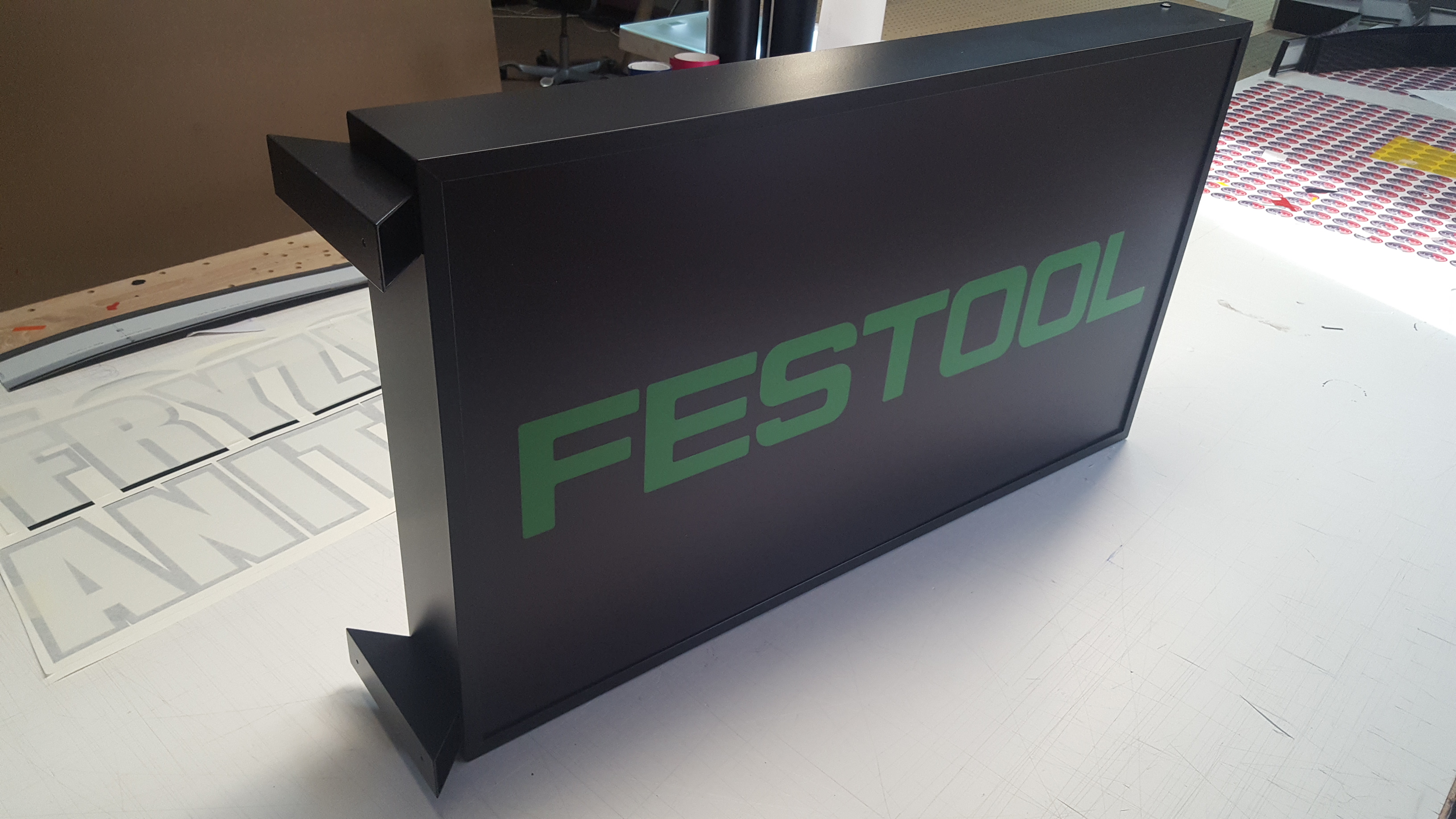 Reklama świetlna zbudowana na konstrukcji aluminiowej z licem z poliwęglanu kanalikowego.