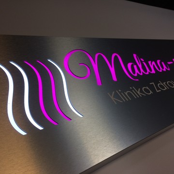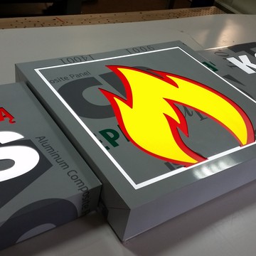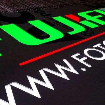 - Tło (dibond) nie przepuszcza światła, po podświetleniu - świecą jedynie wyfrezowane elementy grafiki.